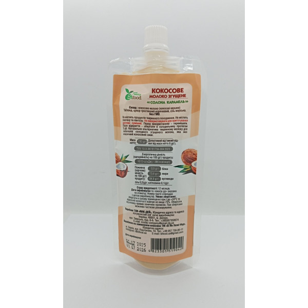 Карамель має ніжний кокосовий смак та ледь солоний присмак. Корисна та смачна альтернатива коров'ячому згущеному молоку. Виготовлена на основі кокосових вершків з додаванням тростинного цукру. Випускається у паковання зі зручною кришкою.