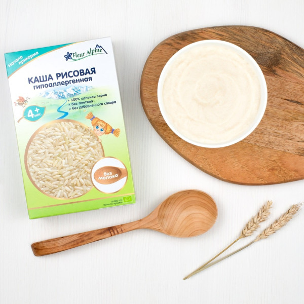 Каша ідеально підходить для першого прикорму. Розчиняється легко, швидко і без грудочок. Ніжна, повітряна консистенція готової каші у вигляді «заметів» нагадує сніг, який лягає на поверхню невеликими пишними нерівностями. Смак каші природний, властивий цьому злаку, з ніжним ароматом рису.