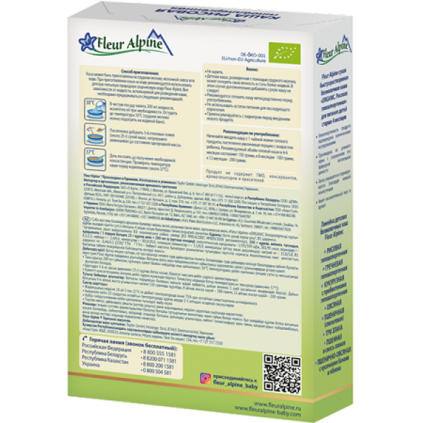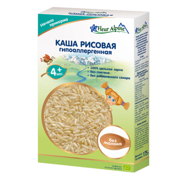 Каша безмолочна Fleur Alpine РИСОВА гіпоалергенна для дітей старше 4 місяців: