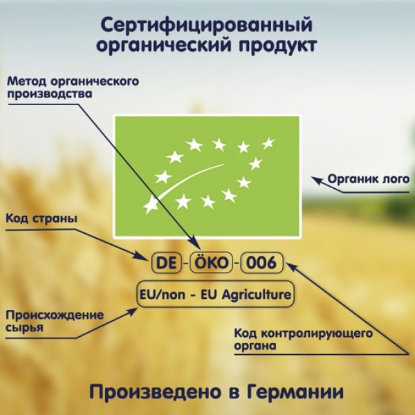 • Органічний продукт, вироблений та сертифікований відповідно до Регламентів Європейського Союзу № 834/2007 та № 889/2008 про органічне сільське господарство