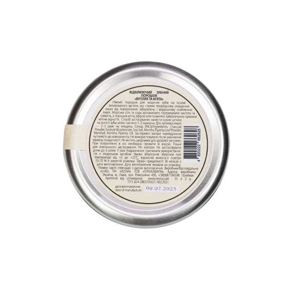 Відбілюючий зубний порошок Вугілля та М’ята — це поєднання природної свіжості та ефективного догляду для щоденної усмішки без компромісів.